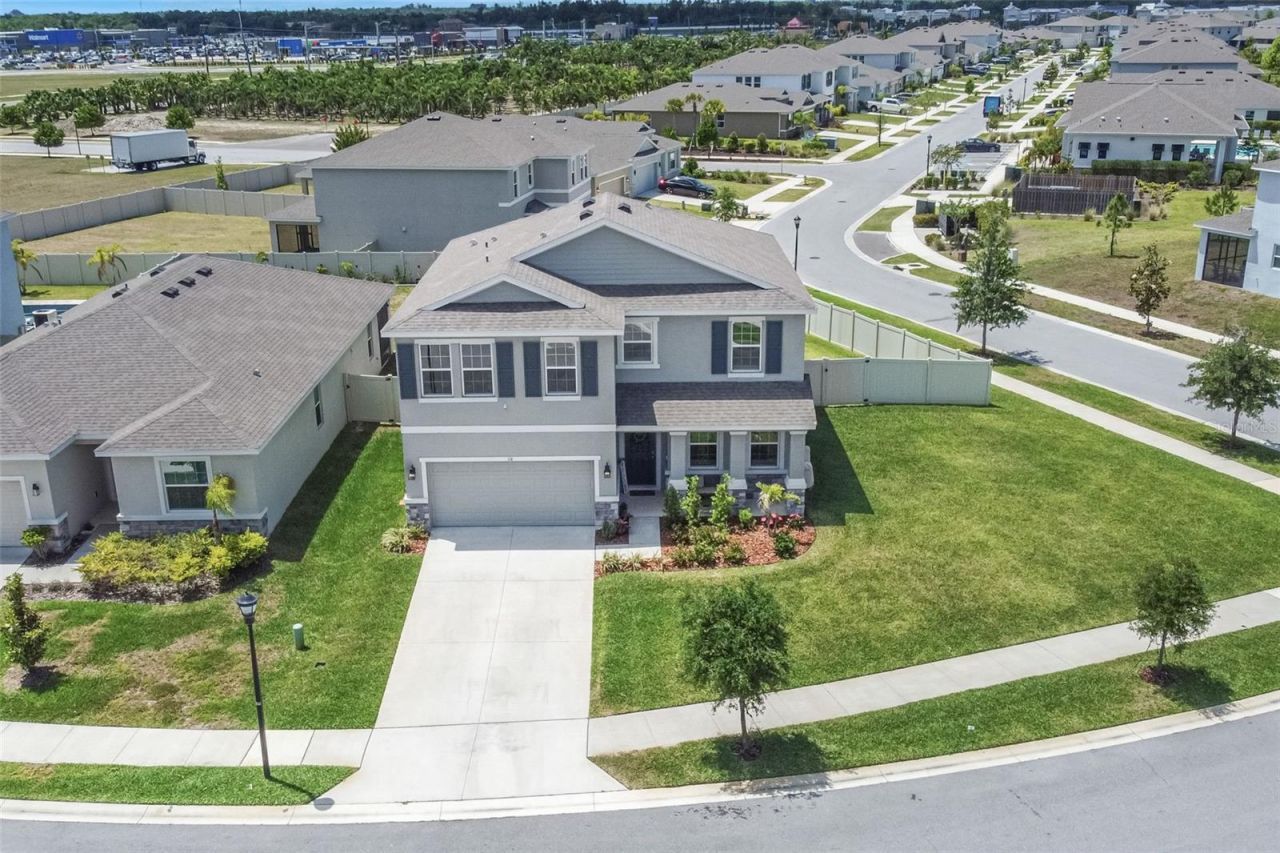 Live where others vacation in this beautifully upgraded 2023-built 'Coral model, ideally positioned on a premium corner cul-de-sac lot in the sought-after Mangrove Manor community of Apollo Beach. This spacious 4-bedroom 3-bath + office + Loft, home blends modern design with everyday functionality.Step inside to discover soaring 9'4 ceilings and a bright, open-concept layout designed for effortless living and entertaining. The chef-inspired kitchen is the heart of the home, featuring 42 cabinetry with crown molding, granite countertops, designer backsplash, and stainless steel appliances-all seamlessly flowing into the main living and dining areas.A first-floor bedroom and full bath offer a perfect setup for guests or multigenerational living. Sliding glass doors lead to a covered, screened lanai overlooking a fully fenced backyard-ready for your dream outdoor oasis.Upstairs, a massive bonus room provides versatile space for a media room, gym, or play area. The primary suite is a true retreat with dual walk-in closets and a spa-like ensuite featuring a soaking tub, separate shower, and dual granite vanities. Two additional bedrooms, a full bath, and a conveniently located laundry room complete the second level.Additional highlights include a whole-home water filtration system, advanced security system with exterior cameras, and durable hurricane-ready concrete block construction.Enjoy resort-style living in Mangrove Manor with a community pool and close proximity to waterfront amenities, marinas, and dining. Outdoor enthusiasts will love nearby Manatee Viewing Center and E.G. Simmons Conservation Park. Convenient access to US-41 and I-75 makes commuting to MacDill Air Force Base, Tampa International Airport, and downtown Tampa quick and easy.