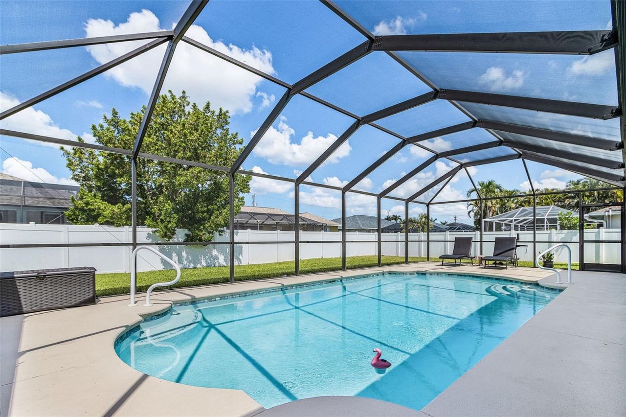 Amazing 3 bed 2 bath pool home, built in 1994 on the best location in Cape Coral, 1,550sqft, screened in front porch, split bedrooms, UPDATED KITCHEN and BATH 2021, GRANITE counter tops with a nice bar, soft close cabinets with underlights, Lighted Cabinets, PANTRY, HUGE Master suite with a big walk in closet, beautiful totally FENCED IN backyard 2021, very low TRANSFERRABLE FLOOD insurance, IMPACT WINDOWS in front, ROOF 2020, AC 2018, Water heater 2019, NEW OUTSIDE PAINT 2026, RE-PIPED 2024, Assessments PAID OFF, HUGE LANAI under the truss with access to the POOL BATH, NEW POOL PUMP and FILTER 2024, POOL RESURFACED and NEW POOL ENCLOSURE 2025, Auto Sprinkler system, prewired GENERATOR plug with controller, very central located, close to restaurants, shopping and enjoyment